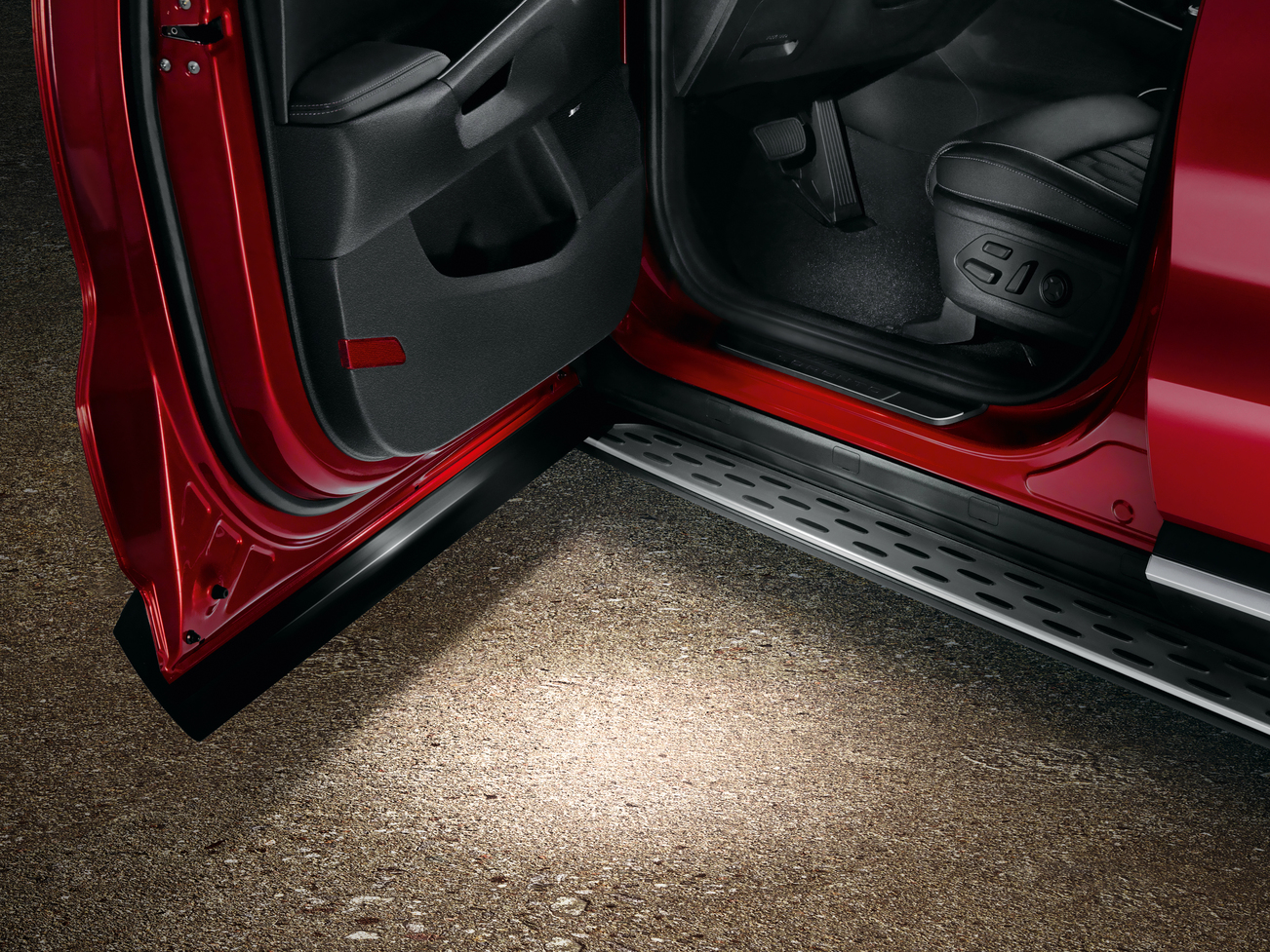 The spotlight is on whenever you open the car door. These LED puddle lights add a distinctive yet subtle glow for a unique entrance and increased visibility, especially in darkness. darkness.. Set of Only for vehicles with AUTO UP/DOWN window function on both sides of the front doors.-