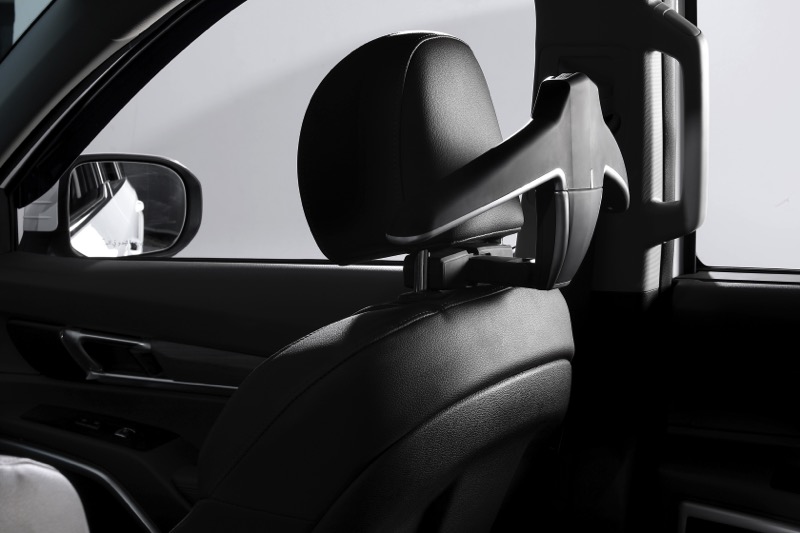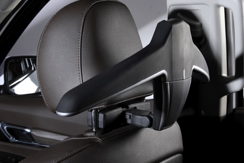 Folding table mounted to headrest. Retractable cup holder contains. Max load : 5kg-