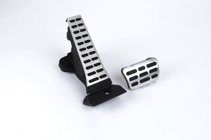 Accessorize with these stainless sport pedals, featuring a brushed aluminum finish and slip resistant rubber pads.-