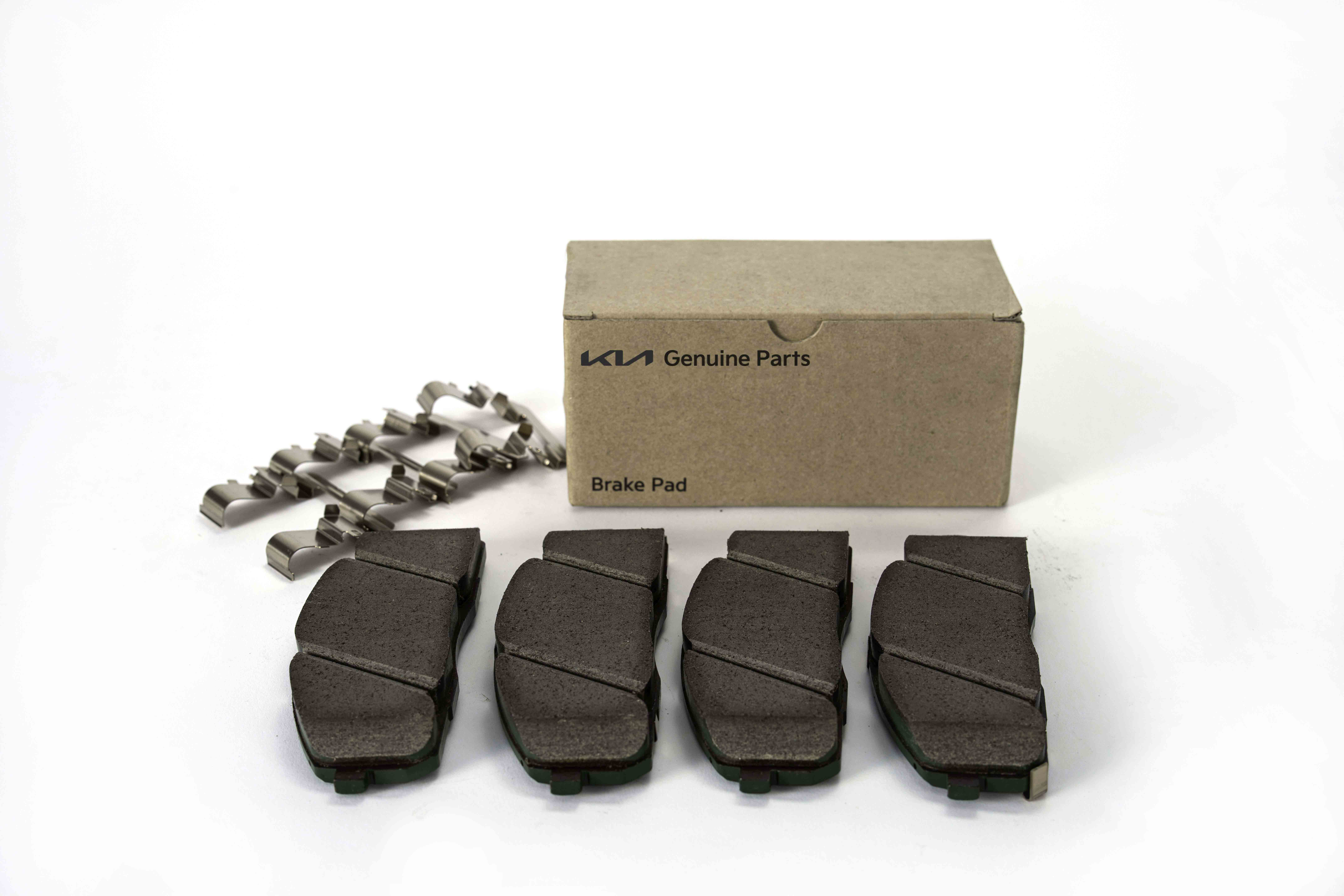 The Genuine Front Brake Pad Kit by KIA offers reliability and safety, providing consistent braking performance for a smooth driving experience.-